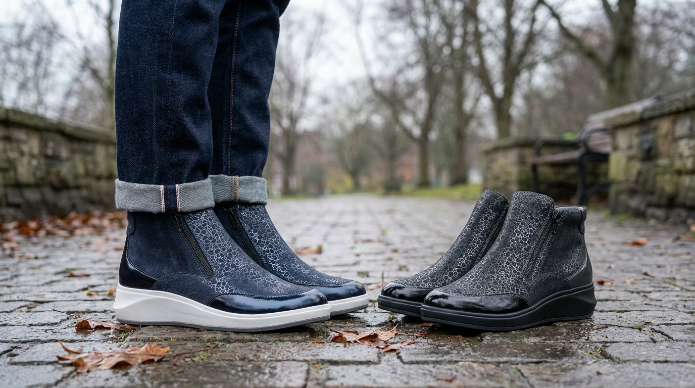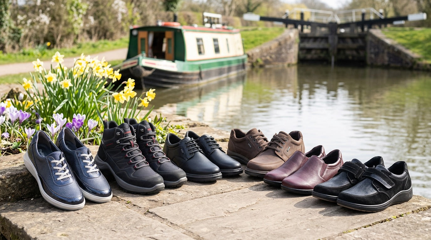 Padders + Ladies Slippers Dual Fit 4E/6E & 6E BESS - Navy Woven Spot