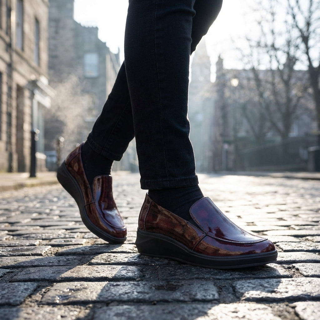 Lewes - Wide-Fit Slip-On Wedge with Stylish Printed Leather Detailing